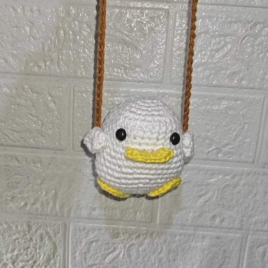 Handmade Crochet Duck Car Hanging | Cute Amigurumi Decor