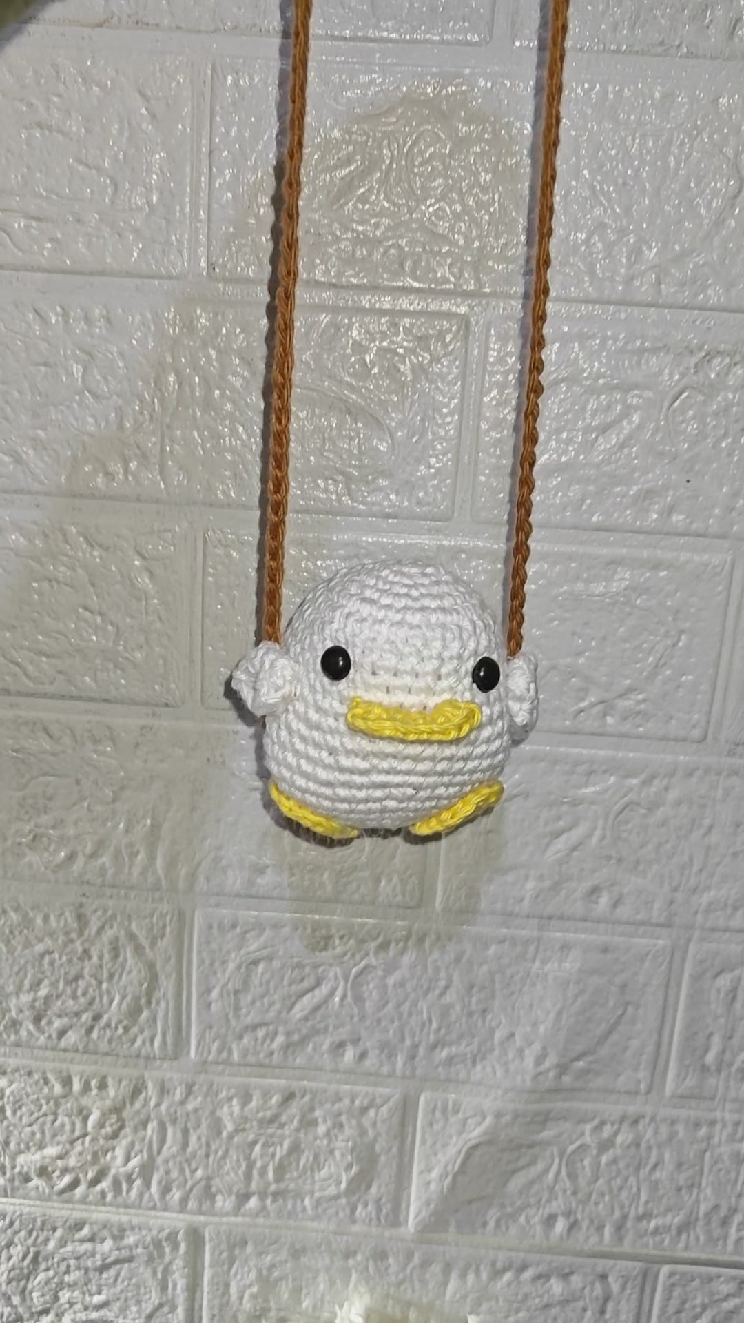Add a touch of charm to your car with this handmade crochet duck hanging! Made with soft cotton yarn, this adorable duck is lightweight, durable, and perfect for decorating your rearview mirror. Each piece is handcrafted with love, making it a unique gift for car owners, crochet lovers, or anyone who enjoys cute aesthetics.